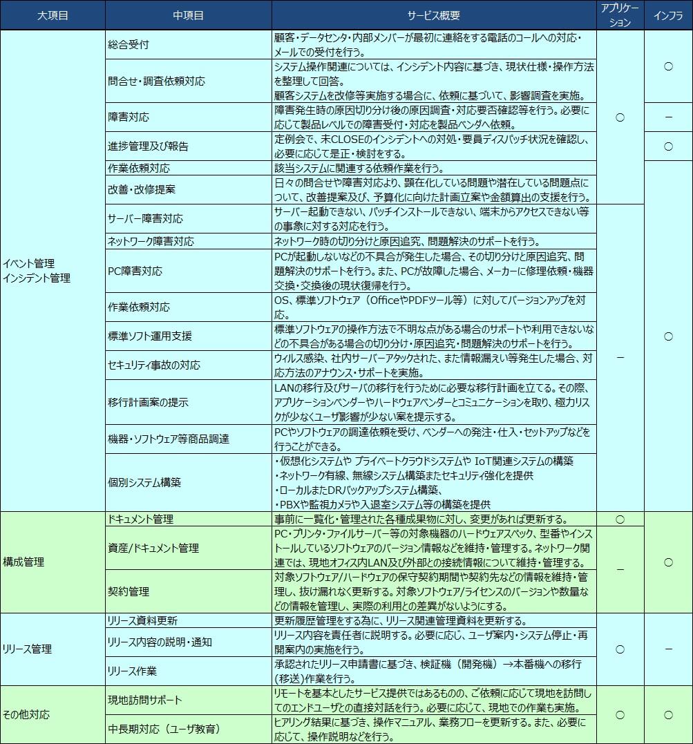 各パッケージ製品及びネットワークを含むIT基盤における運用保守のスペシャリストを集約したシェアドサービス型の対応で、