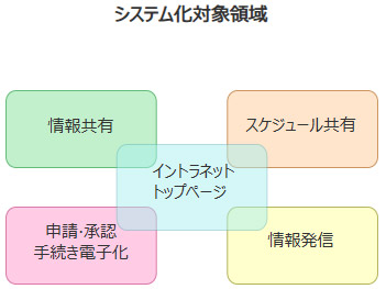 イントラネット再構築により、現行の処理能力の向上、情報共有の促進、イントラネットの利便性の向上を図る。