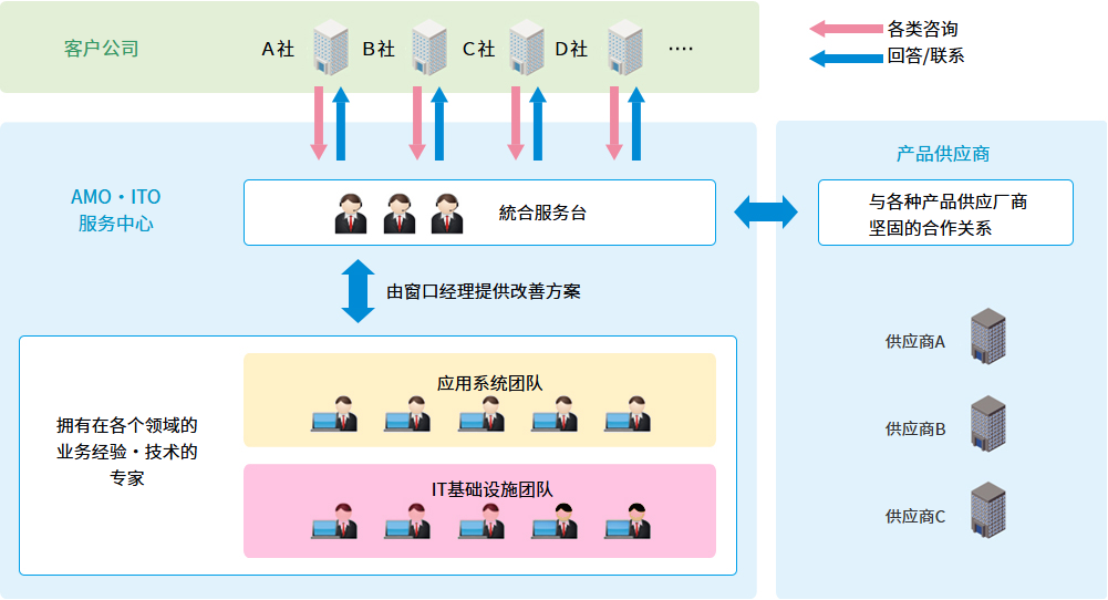 由综合服务台受理客户的各类咨询(包含仕样确认、故障联系、委托作业、业务改善等)。