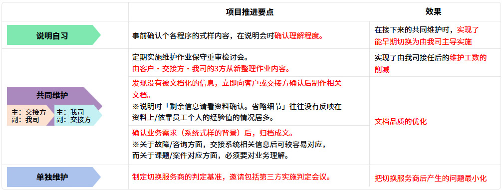 - 基于在先行交接的会计领域里总结出的用户企业的文化和规定,制定交接方法并按此实施