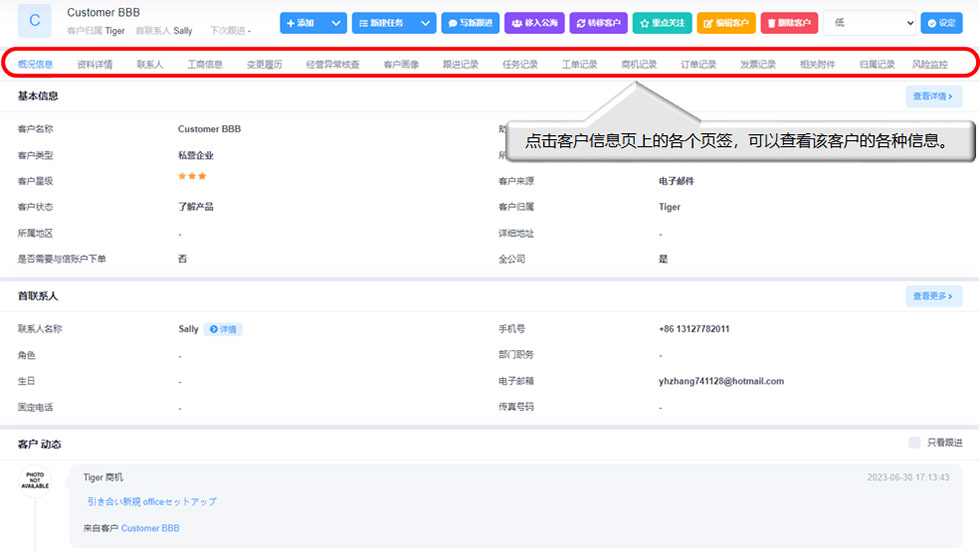 - 汇总与客户的接触信息