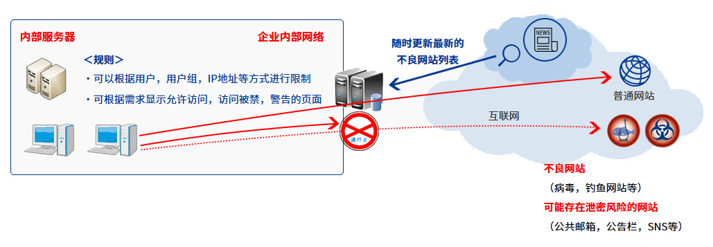 - 想要限制外部的公共邮箱,公告栏,SNS等的访问,预防企业内部信息外流