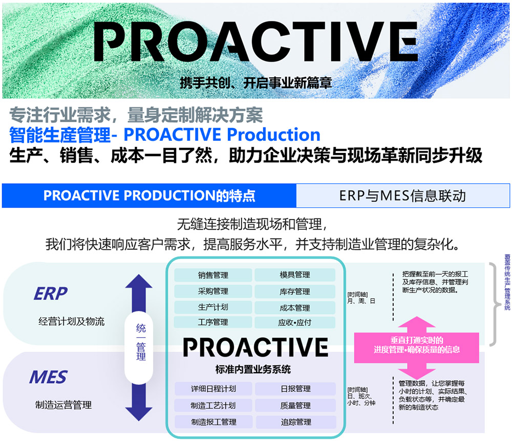 - 标配高效生产管理,PROACTIVE Production模板化核心功能,