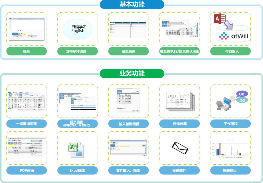 利用标准的基本功能以及开发工具,可以制作以下的业务画面。