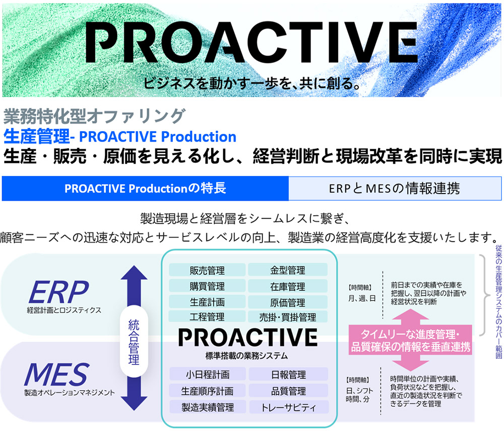 - 生産管理に必要な業務機能をテンプレート化したPROACTIVE Productionと、
